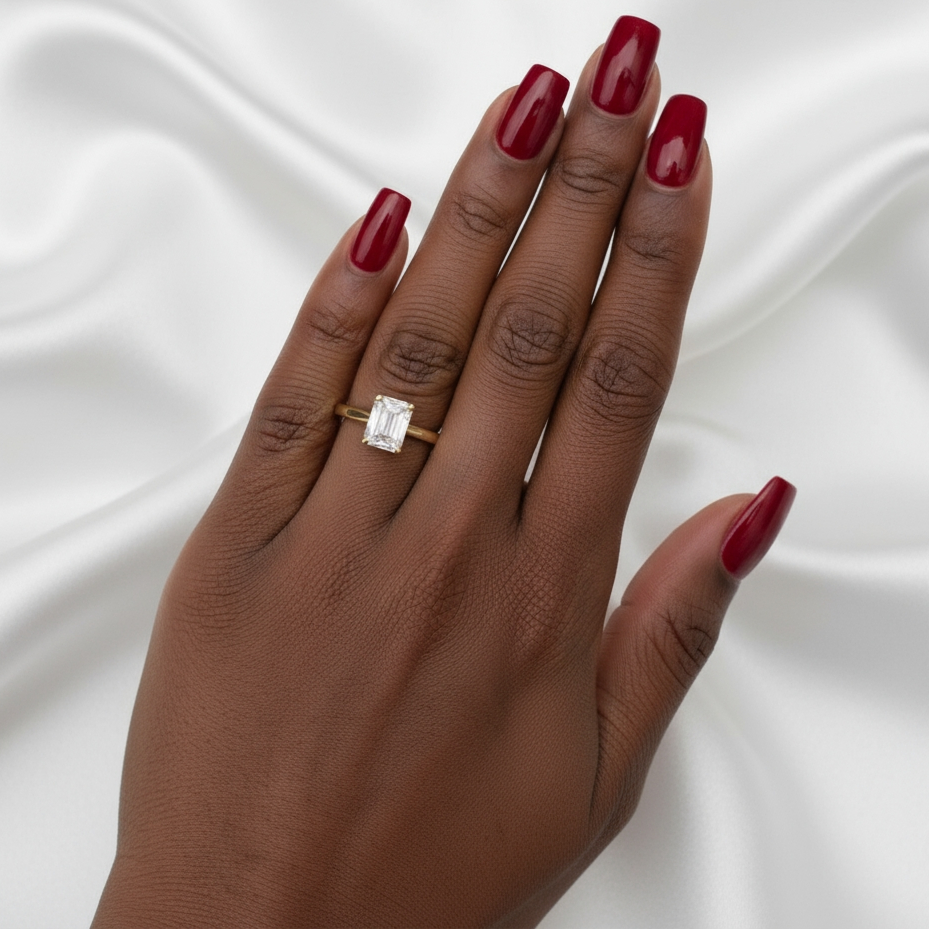 Emerald Cut Engagement Ring Simulated Diamond Solitaire Rex Jewellers - Fortuna
