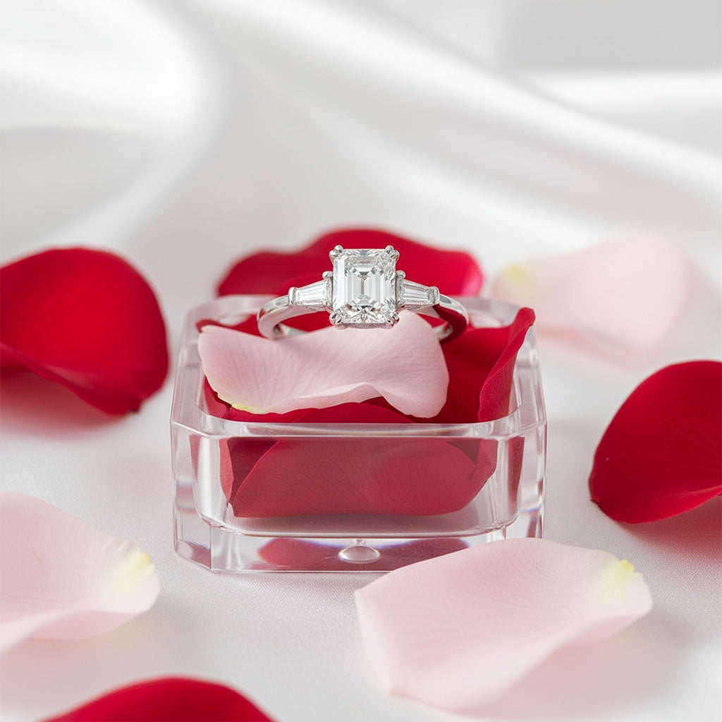 Our Princess Cut Shoulder Moissanite Ring is outstanding, enchanting, and a reflection of bold love, symbolizing the deep emotion of a meaningful engagement.